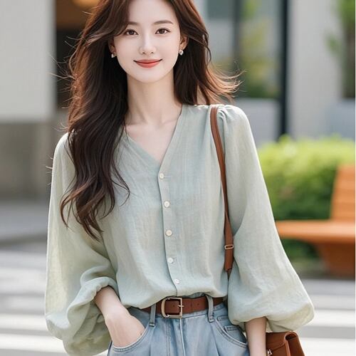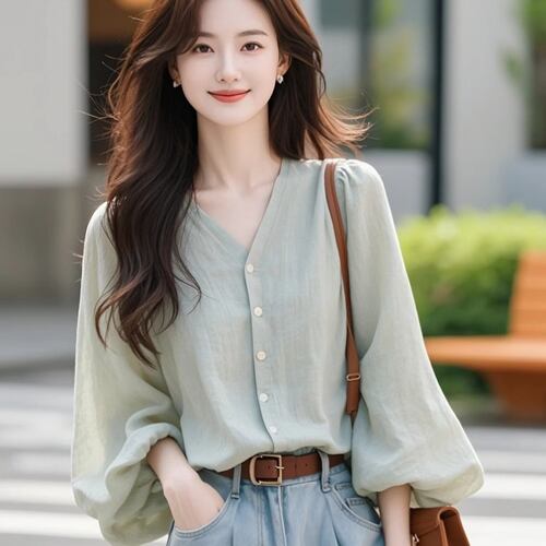 初回送料無料 新作レディースファッション カジュアル 無地シンプル vネック 長袖トップス