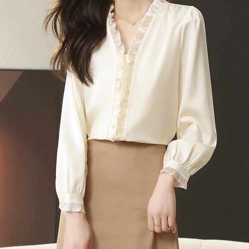 初回送料無料 新作レディースファッション カジュアル 長袖シャツ シフォン vネック トップス
