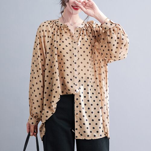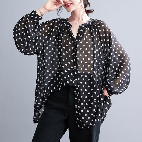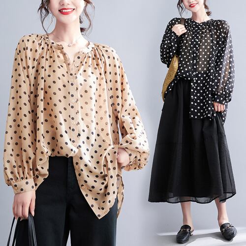 初回送料無料 新作レディースファッション カジュアル プリント 水玉模様 シフォン トップス