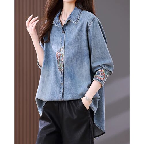 初回送料無料 新作レディースファッション カジュアル オシャレ ゆったり 刺繍シャツ トップス