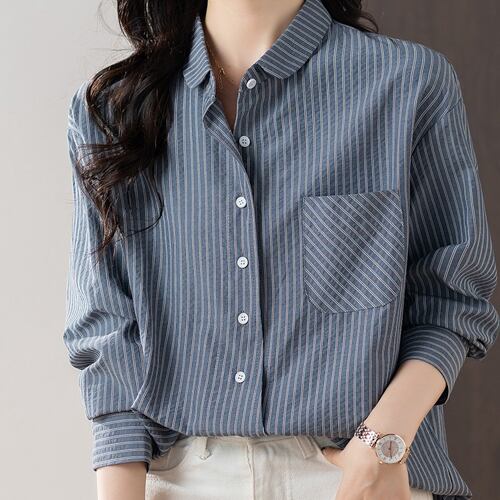 初回送料無料 新作レディースファッション カジュアル ゆったり ストライプ長袖シャツ トップス