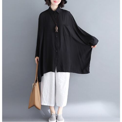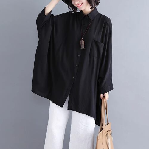 初回送料無料 秋レディースファッション カジュアル ゆったり コウモリシャツ 無地 トップス