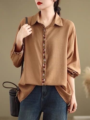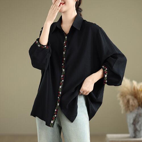 初回送料無料 秋レディースファッション カジュアル ゆったり 刺?シャツ 長袖 人気トップス