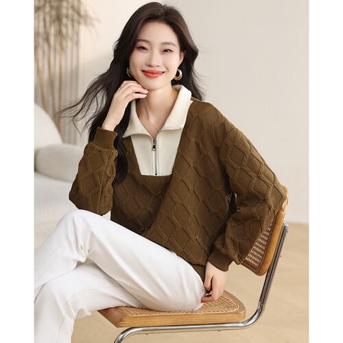 初回送料無料 新作レディースファッション カジュアル 色合わせ パッチワーク 人気トップス