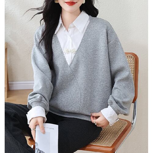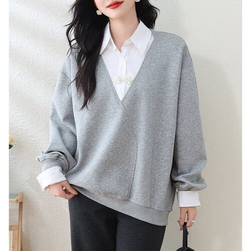 初回送料無料 新作レディースファッション カジュアル ゆったり フェイク2枚 人気トップス