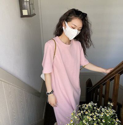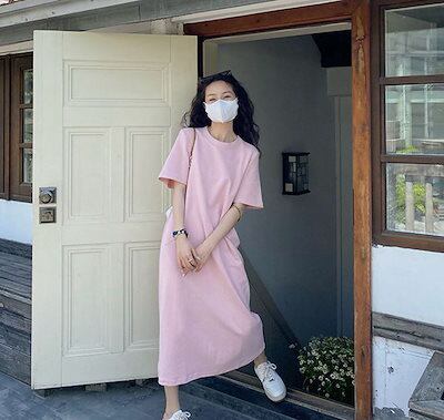 ワンピース ピンク Tシャツスカート ミディアム 2024夏 カジュアルニーロングスカートゆったり着やせ ワンピース レディース 韓国ファッション