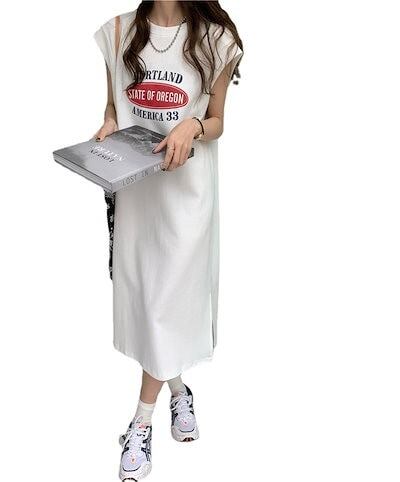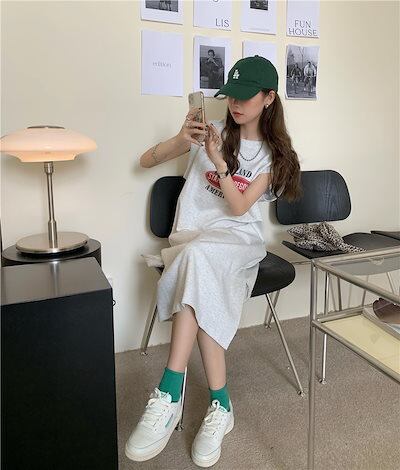 【3日以内出荷】ワンピース ノースリーブ 夏2024新型 ゆったり 遮肉痩せ見えカジュアルスポーツ Tシャツワンピース レディース 韓国ファッション