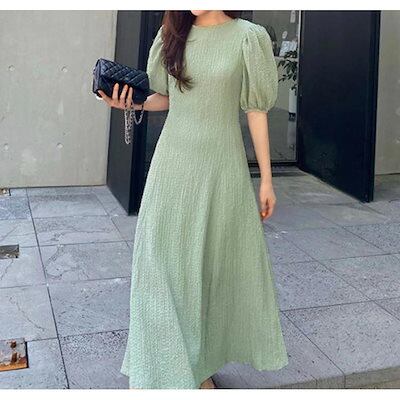 ワンピース 2024夏 ビーチスカート 純色 ロングスカート 半袖 クルーネックワンピース カジュアル レディース 韓国ファッション