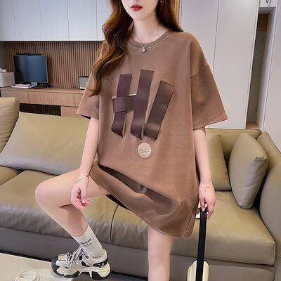 Tシャツ 2024夏 半袖 クルーネック トップス ミディアムコットン レディース 韓国
