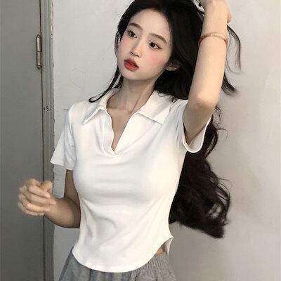 【3日以内出荷】Tシャツ 半袖 ショート丈 ショルダー夏レトロ トップス レディース 韓国