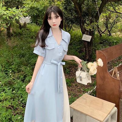 ワンピース ドレス フレンチシフォンワンピース 夏 オーバーサイズ 不規則 気質 ヘボン風 ロングスカート レディース 韓国ファッション