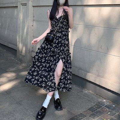 2024夏新品!!!夏 人気 韓国ファッション 花柄 ロングワンピース フレンチ ドレス 通勤 通学