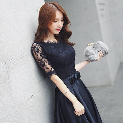 2024新品追加パーティドレス ブラックロング ワンピース 韓国ファッション 結婚式 誕生日 演奏会 花嫁 司会