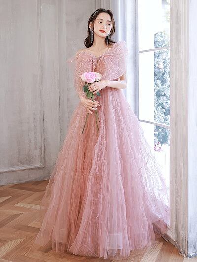 2024新品追加パーティドレス ピンクワンピース 韓国ファッション 卒業式 結婚式 誕生日 演奏会 花嫁 司会