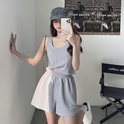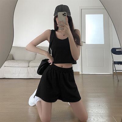 セットアップ 涼しく楽ちんセットアップ2024 韓国ファッション 夏 カジュアル スポーツランニングウェア キャミソールショーツ2点セット ゆったり レディー