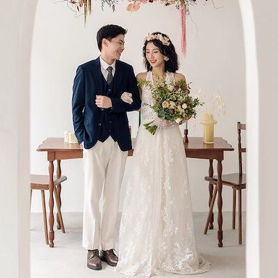 韓国新作追加!!! 結婚式 ドレス ワンピース フレンチレース ウエディングドレス フィッシュテールスカート 花嫁 披露宴 二次会 謝恩会 発表会 演奏会 女子会