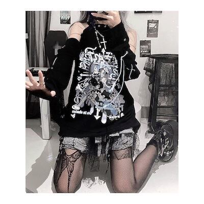 パーカー2024新入荷 スーツ集合 韓国ファッションサブカル パンク ミレニアム y2k 春夏 ゆったり Tシャツ 十字架ネックレス長袖