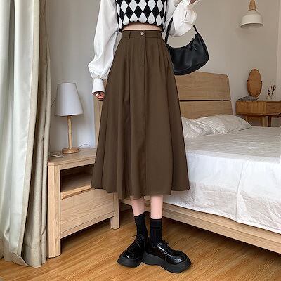 マキシスカート 2024春秋新 ファッション あちこち ミディアム カジュアル プチ Aラインスカート レディース ロングスカート 韓国