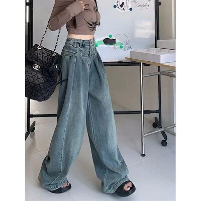ワイドパンツ ins デニム ジーンズ レディース 秋 肉隠し ハイウエスト ゆったり ドレープ ウォッシュド パンツ 美脚 韓国
