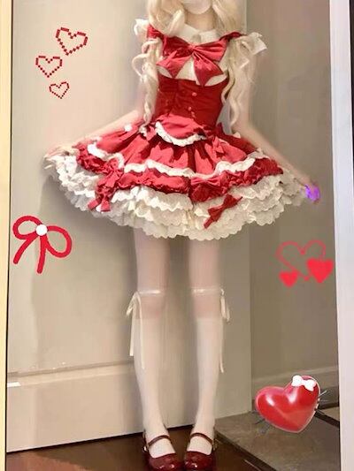 コスプレ色の衝突 パッチワーク ドレス かわいい 復古 ロリータ シャツ着 リボン本 ポンポンスカート セット 韓国 花嫁 茶会