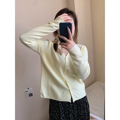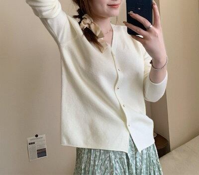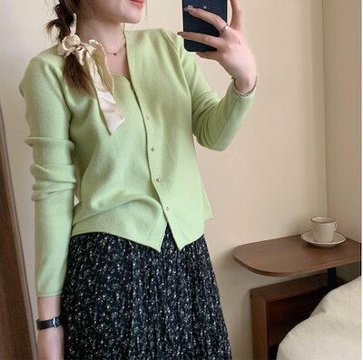 【3日以内出荷】カーディガン 秋 ニット レディース 優しい ピンク Vネック 薄い部分 ジャンパー ショート ルーズ トップス タイド 韓国