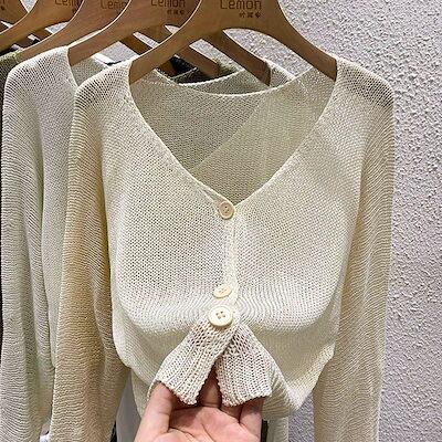 【3日以内出荷】カーディガン 2024 春と秋 ニット レディース ジャケット ショート フレンチ Vネック 薄手 アウター ホローアウト ルーズ トップス 韓国