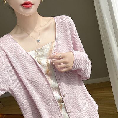 【3日以内出荷】カーディガン Vネック 日焼け止め ニット ジャケット レディース 薄手 ゆったり ロングスリーブ 夏秋用 スケルトン アウター 韓国ファッション