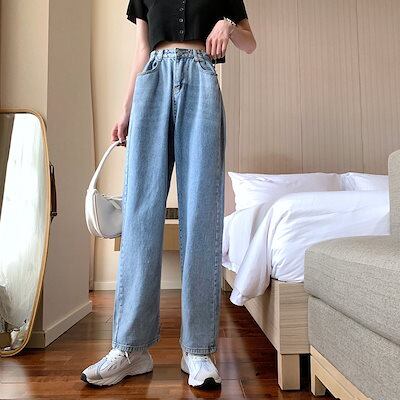【3日以内出荷】スラックスパンツ 秋 デニムパンツ レディース ハイウエスト ルーズ ワイドパンツ ストレート モッピングパンツ 韓国