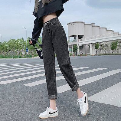 【3日以内出荷】脚長効果!スキニーデニムパンツ ジーパン 腰を緩める ゆとりがある ストレートパンツ 春秋 新品 ハイウエスト パンツ やせて見える 九分ズボンレディース 韓国