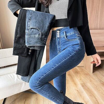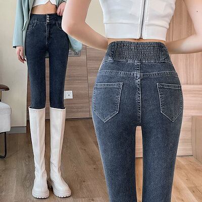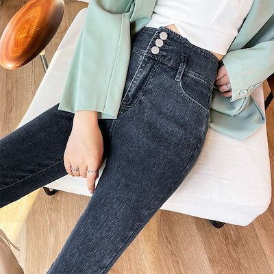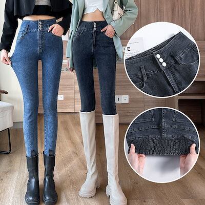 【3日以内出荷】脚長効果!スキニーデニムパンツ 2024項 3列掛け ハイウエスト ばね力 ジーパン 腰を緩める やせて見える に足部を付ける ズボン本 レディース 韓国
