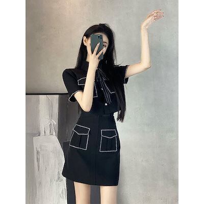 涼しく楽ちんセットアップ 夏 セット 2024年モデル ファッション 気質 半袖+スカート 2つのセット レディース 韓国