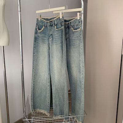 脚長効果!デニムパンツゆったり ストレート モップパンツ モップパンツ デニムパンツ レディース服 ロングパンツ 美脚 長ズボン