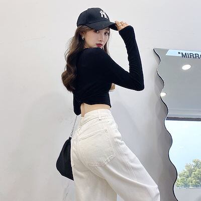 デニムパンツ脚長効果 ゆったり ストレート モップパンツ ディース服 ロングパンツ 美脚パンツ