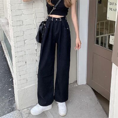 ハイウェスト ドレープ感 カーディガン ゆったり ストレートモップパンツ デニムパンツ レディース服 ロングパンツ 美脚