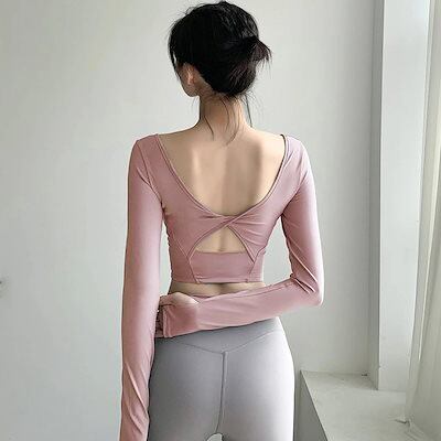 韓国ファッションレディースフィットネスピラティスジョギング トレーナー Tシャツカップ付きインナーおしゃれヨガウェア