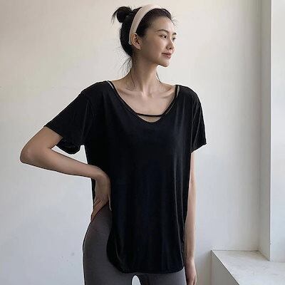 女性用スリムルーズ半袖トップ夏プロピラティストレーニングヨガウェア薄手通気性スポーツフィットネスブラウス
