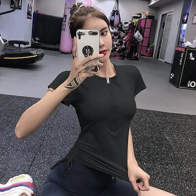女性用ハーフジップスポーツトップ夏ドローストリング半袖tシャツ女性プロピラティスヨガトレーニングフィットネスウェア