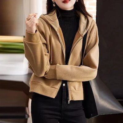 人气新作パーカー 新しいスタイル 薄手 着痩せ フード付き スウェット カーディガン ジップ カジュアル ジャケットニットセーター日系秋アウター