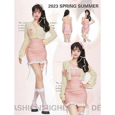 大人気ロリスーツパーティードレス レース つぎて 上着 A字ポンポンスカート ハイウエスト スカート 韓国ファッションスプリングスーツ 足が長い やせて見える