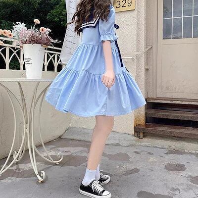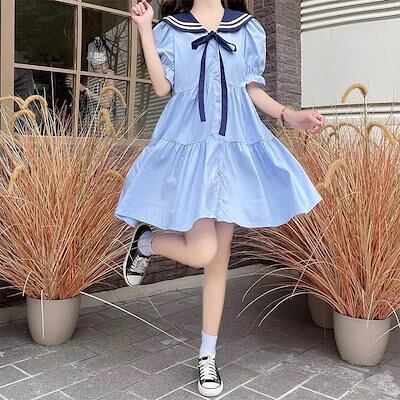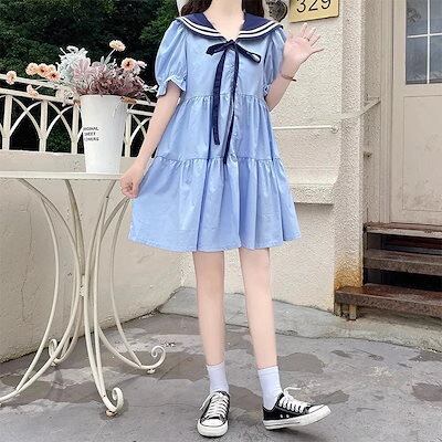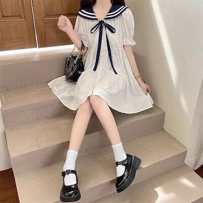 大人気新作ロリータドレス 海軍領 セーラー服 プリーツ ワンピース キャンパス風 JK 制服韓国ファッショ 脚魅せミニスカート