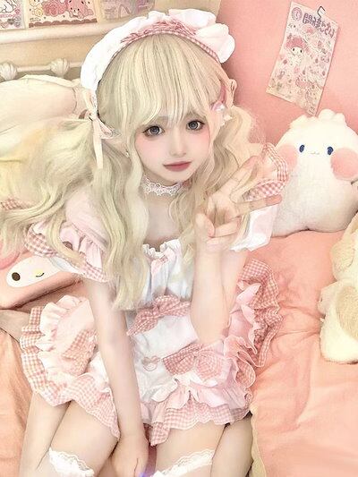 大人気ロリスーツパーティードレス 夏の新作 角襟 パフスリーブトップス ハイウエスト A字半身スカート 韓国ファッションスプリングスーツ 足が長い やせて見える