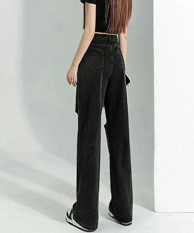 脚長効果!デニムボトムス ダメージジーンズ レディース デニムパンツ 太ももゆったり ワイド ダメージ ジーンズ デニム パンツ ボトム ワイドパンツ ワイドデニム メカ割