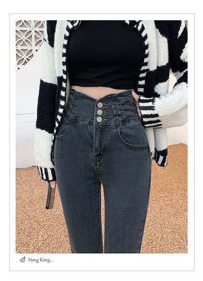 脚長効果!デニムボトムス?脚長効果!スキニーデニムパンツ ハイウエストジーンズ女性痩せ見え鉛筆タイトパンツ