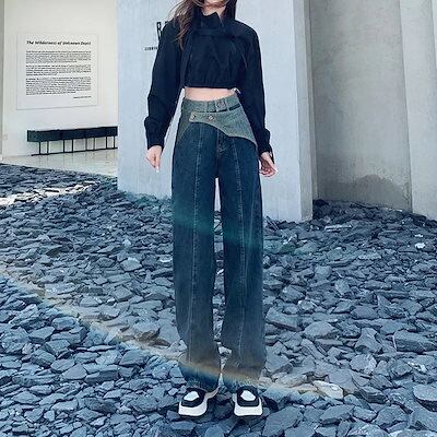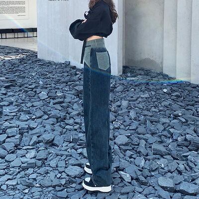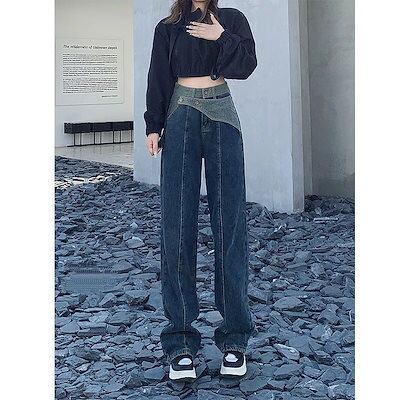 激?れ人気商品 脚長効果!デニムパンツ かっこいい!スラックスパンツ 美脚 着痩せ ストレートジーンズ 春夏 ハイウエスト レトロ ゆったり ワイドパンツ