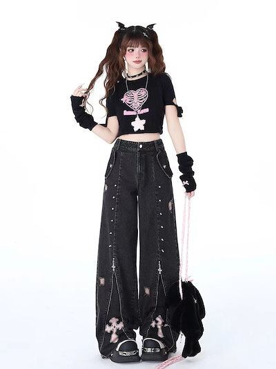 激?れ人気商品 脚長効果!デニムパンツ かっこいい!スラックスパンツ ストレートジーンズ ワイドパンツ おしゃれ 春夏アメリカジッパー ゆったり ワイドパンツ