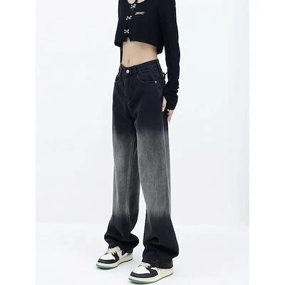 激?れ人気商品 脚長効果!デニムパンツ かっこいい!スラックスパンツ ストレートジーンズ ワイドパンツ おしゃれ 春夏 ブラック insハイウエスト ゆったり ワイドパンツ