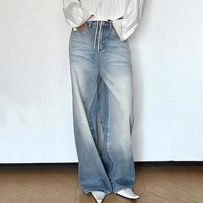激?れ人気商品 脚長効果!デニムパンツ かっこいい!スラックスパンツ ストレートジーンズ ワイドパンツ おしゃれ 春夏 ローウエスト ゆったり ワイドパンツ カジュアルロングパンツ