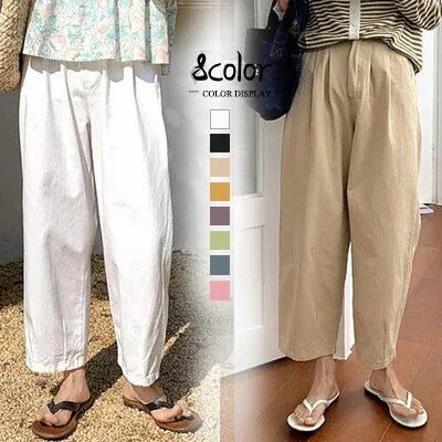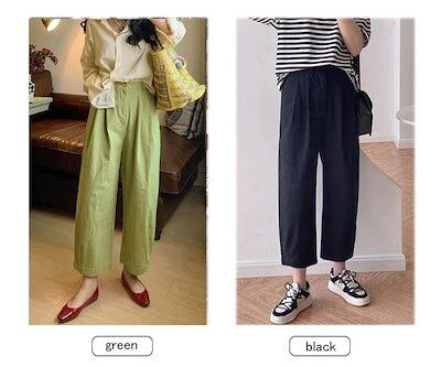 【自社生産】高レビュー 高品 韓国春夏秋新作ゆったりバルーンパンツハイウエストカジュアルストレートナインポイントワイドパンツ