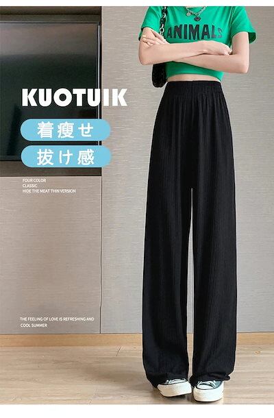 【急速出荷】SNSで話題の機能クーラーパンツ ワイドパンツ ひんやりを実感 レディースリブパンツ 春夏秋冬を持つます脚長効果 清凉感 通気性