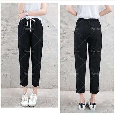 パンツ イージーパンツ ロングパンツ 春 夏 レディース テーパードパンツ 麻綿パンツ 9分丈 無地 美脚スパッツ 伸縮性ウエストバン ポケット付き